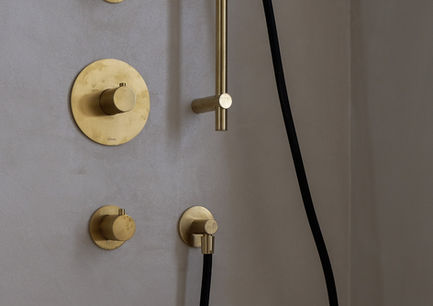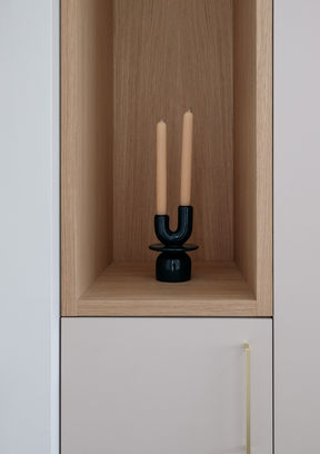 Le béton ciré minéral signé Jolie M’Home contraste avec les menuiseries en chêne, pour une ambiance à la fois brute et chaleureuse.